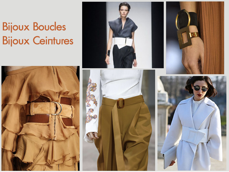 Outsized belt Gianfranco Ferré – Cuff Céline – Large belt Balmain – Resin buckle belt Ellery – Avenue fashion white coat and belt