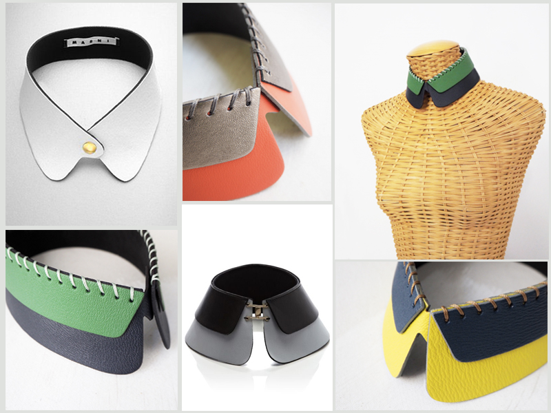 Marni fake leather-based collar – SAM fake leather-based collars from ATTELIER by BUTTONS PARADISE – Black grey detachable collar Marni through Moda Operandi